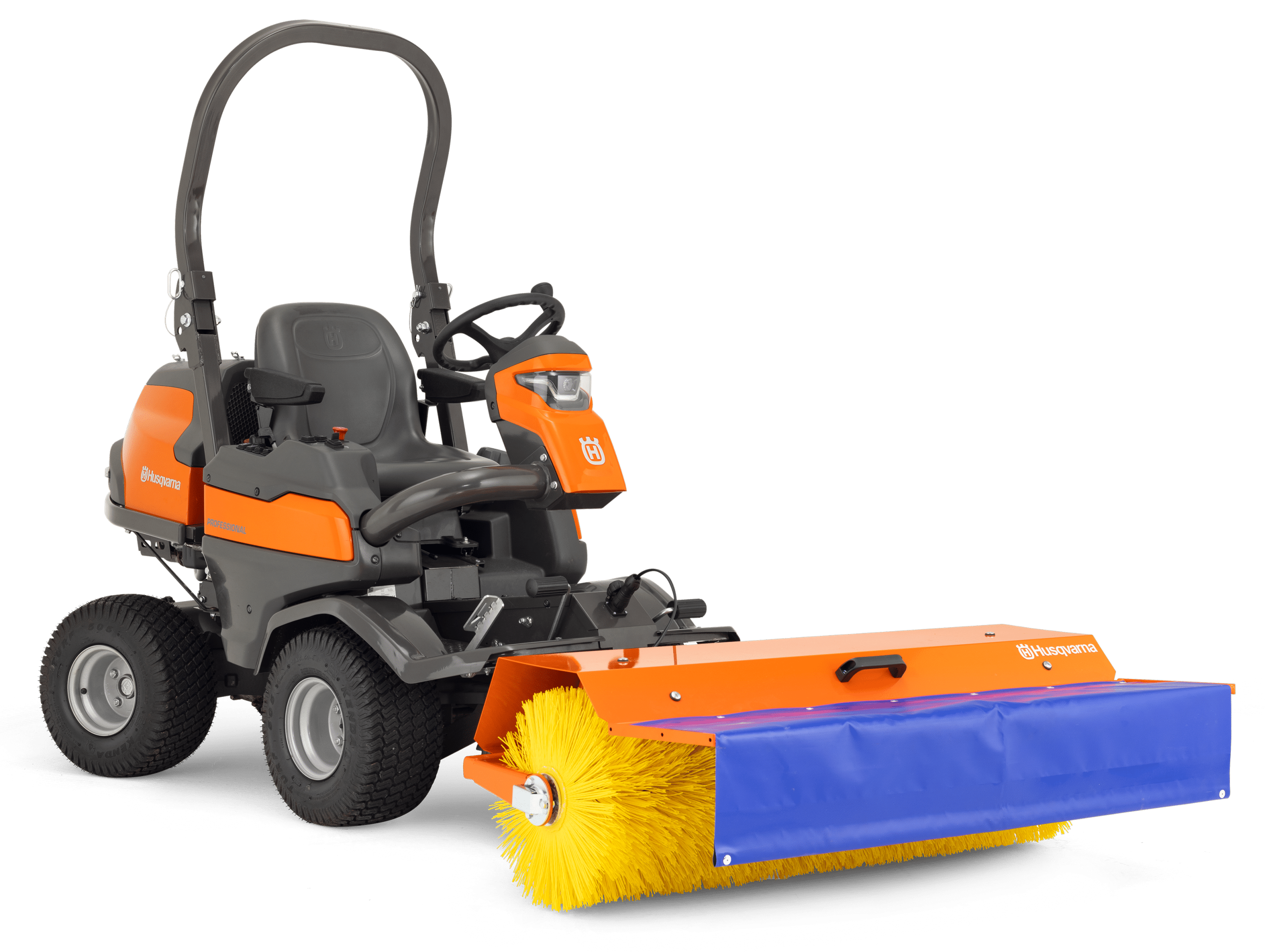 “Balai rotatif puissant pour balayer les feuilles, le gravier, la neige, etc. Facilement orientable dans les deux sens à partir du panneau de commande situé sur le siège du conducteur. Deux roues de support solides à l’arrière suivent le contour du sol. – Nécessite que la tondeuse frontale soit équipée du “”Kit de prise de courant, avant””.”
