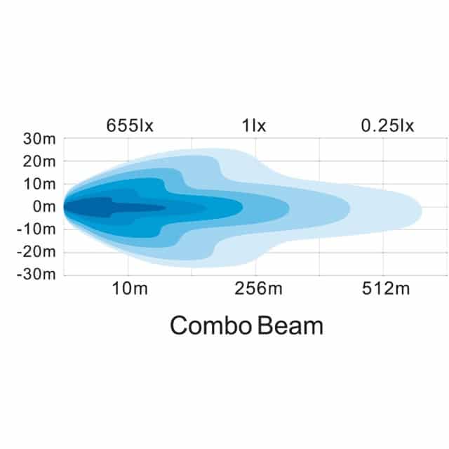 Combinaison éclairage large 90° avec les led extérieurs de rampe et lointain 8° avec les led situées au centre de la rampe.