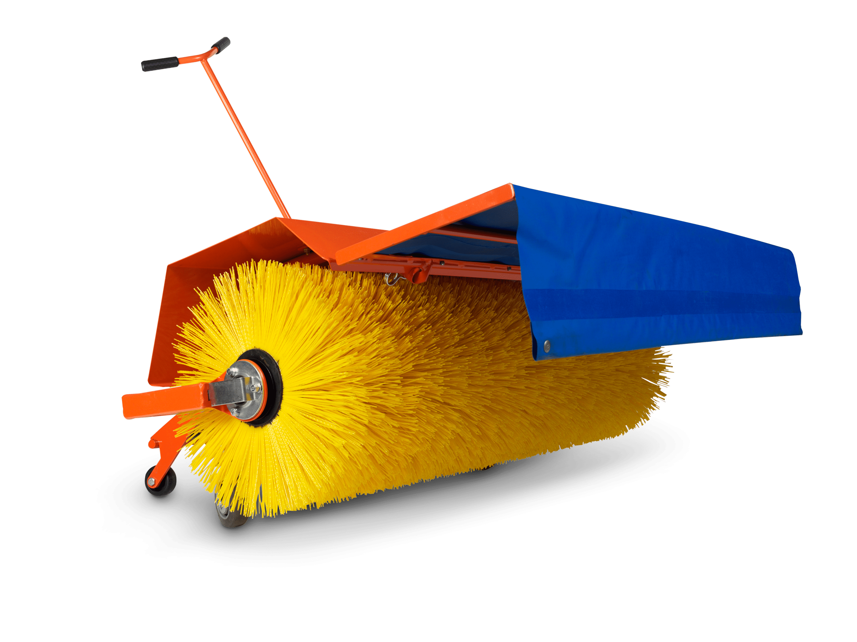Balai rotatif pour balayer les feuilles, la neige, etc. Peut être incliné d’un côté ou de l’autre.