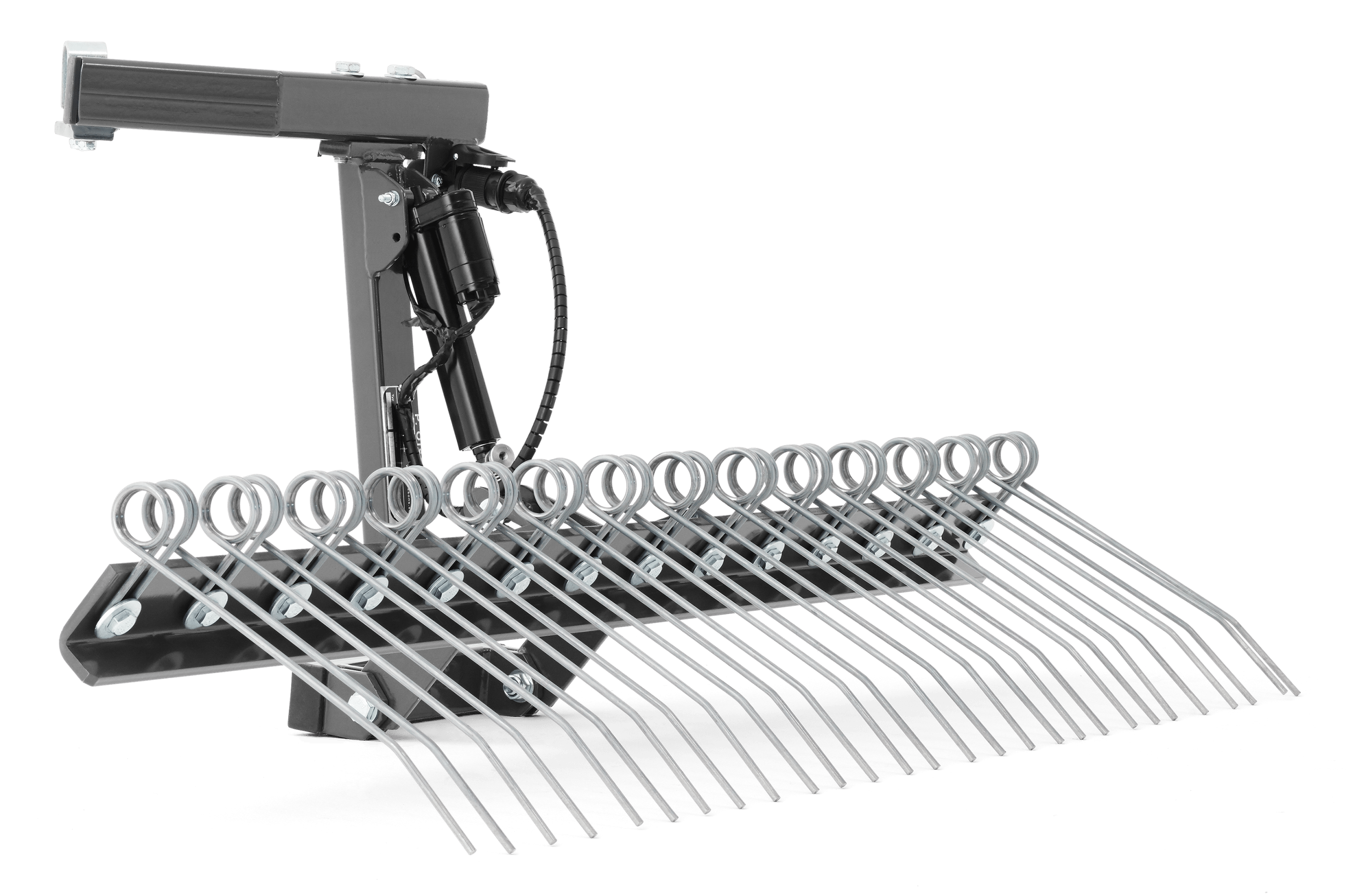 Un râteau stable pour niveler le gravier et la collecte des mauvaises herbes. Levage électrique et l’abaissement du râteau en font à la fois ergonomique et facile à utiliser.