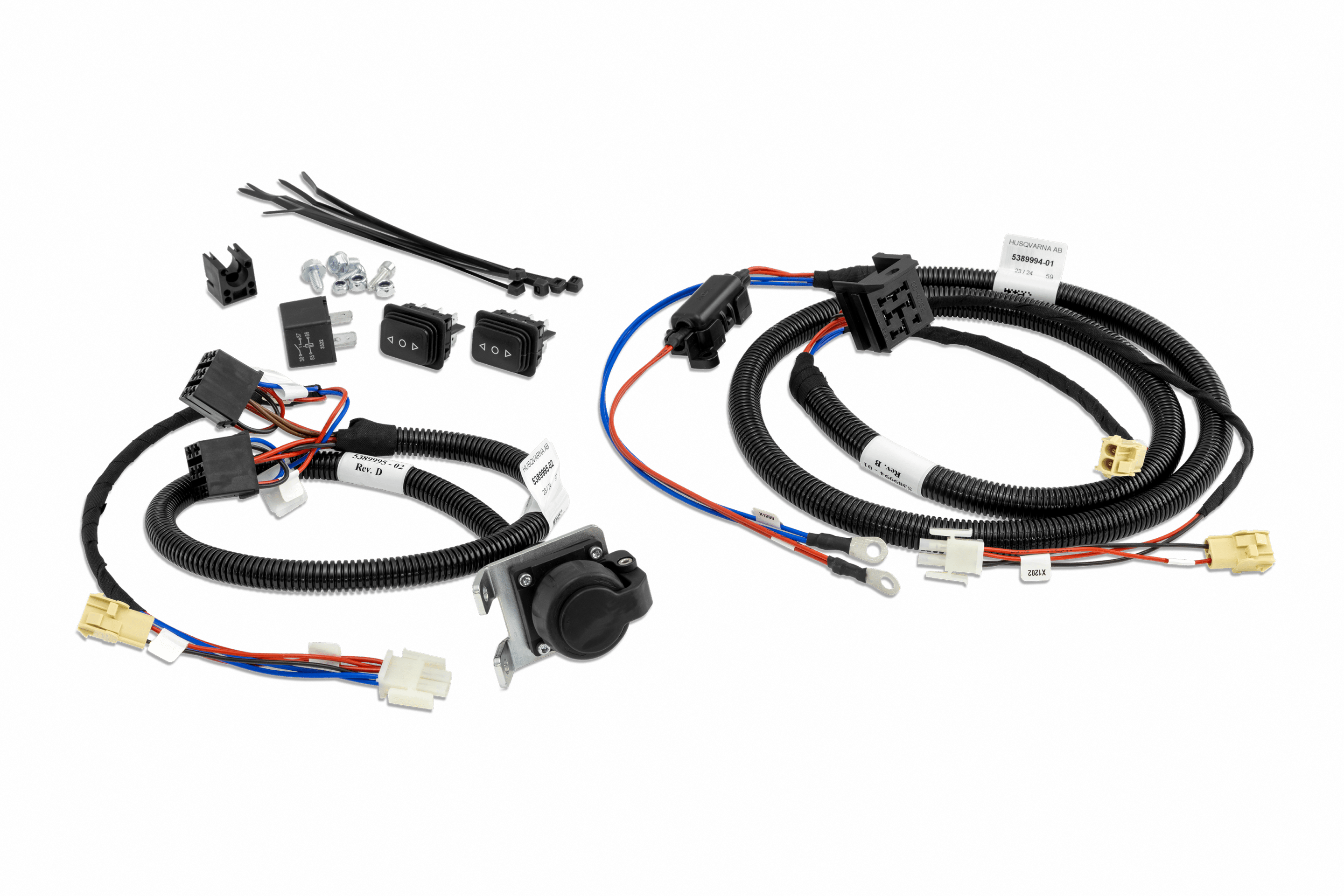 Kit comprenant un connecteur femelle, des câbles, des interrupteurs et un relais. Contrôle tous les accessoires frontaux nécessitant de l’électricité. Installation facile – ne doit être installé qu’une seule fois.