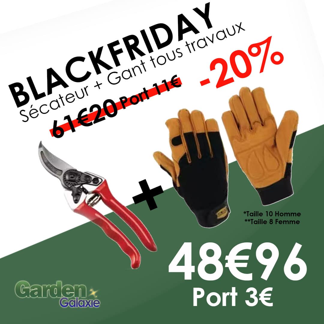 Lot BlackFriday 1 paire de gants femme T8 + 1 sécateur