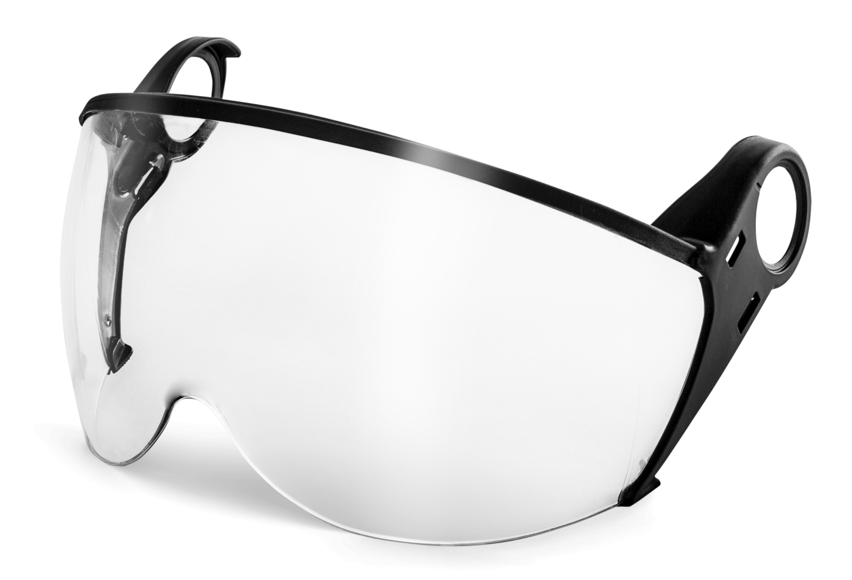 Visière miroir argentée à utiliser en plein soleil. Les visières sont traitées de manière à minimiser la buée et les rayures, et la lentille panoramique est compatible avec les lunettes correctrices. Le contour supérieur en caoutchouc, qui crée une étanchéité entre la visière et le casque, minimise les gouttes d’eau sur le visage. Les bords arrondis et lisses réduisent le risque de coupures et de rayures.